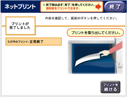 契約書の印刷が完了したら「終了」ボタンを押してください。 契約書類の取り忘れにご注意くださいませ。